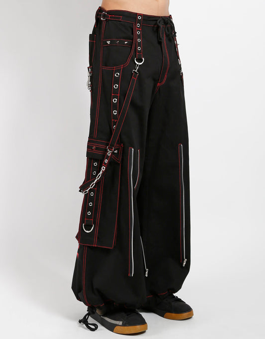 BACK UP SKULL Hose – Gothic Hose Schwarz mit Totenköpfen & roten Nähten