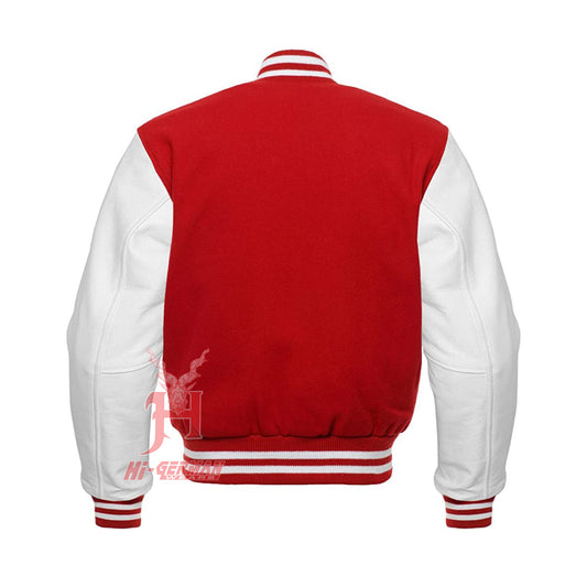 Classic Red Wool Collegejacke mit White Leather Sleeves – Retro Unisex Varsity Bomber Gothic Jacke