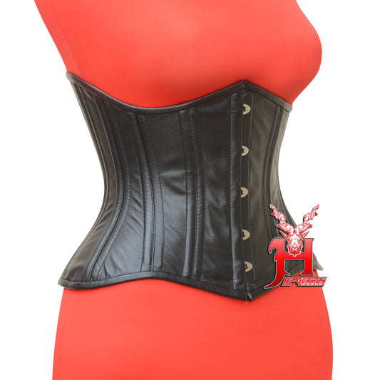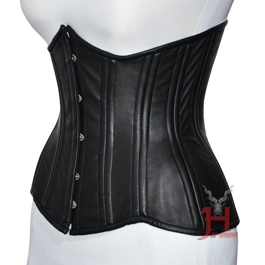 Black Leather Underbust Corset Damen – Double Steel Boned Waist Shaper Gothic Lederkorsett
