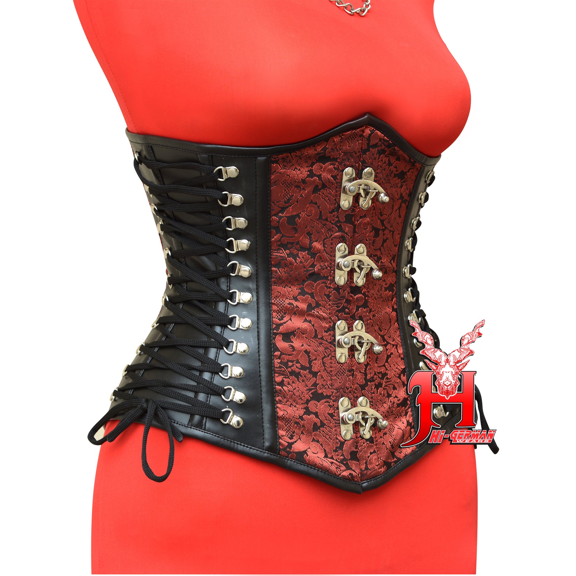 Steel Boned Underbust Steampunk Korsett Damen – Hourglass Body Shaper Black & Red