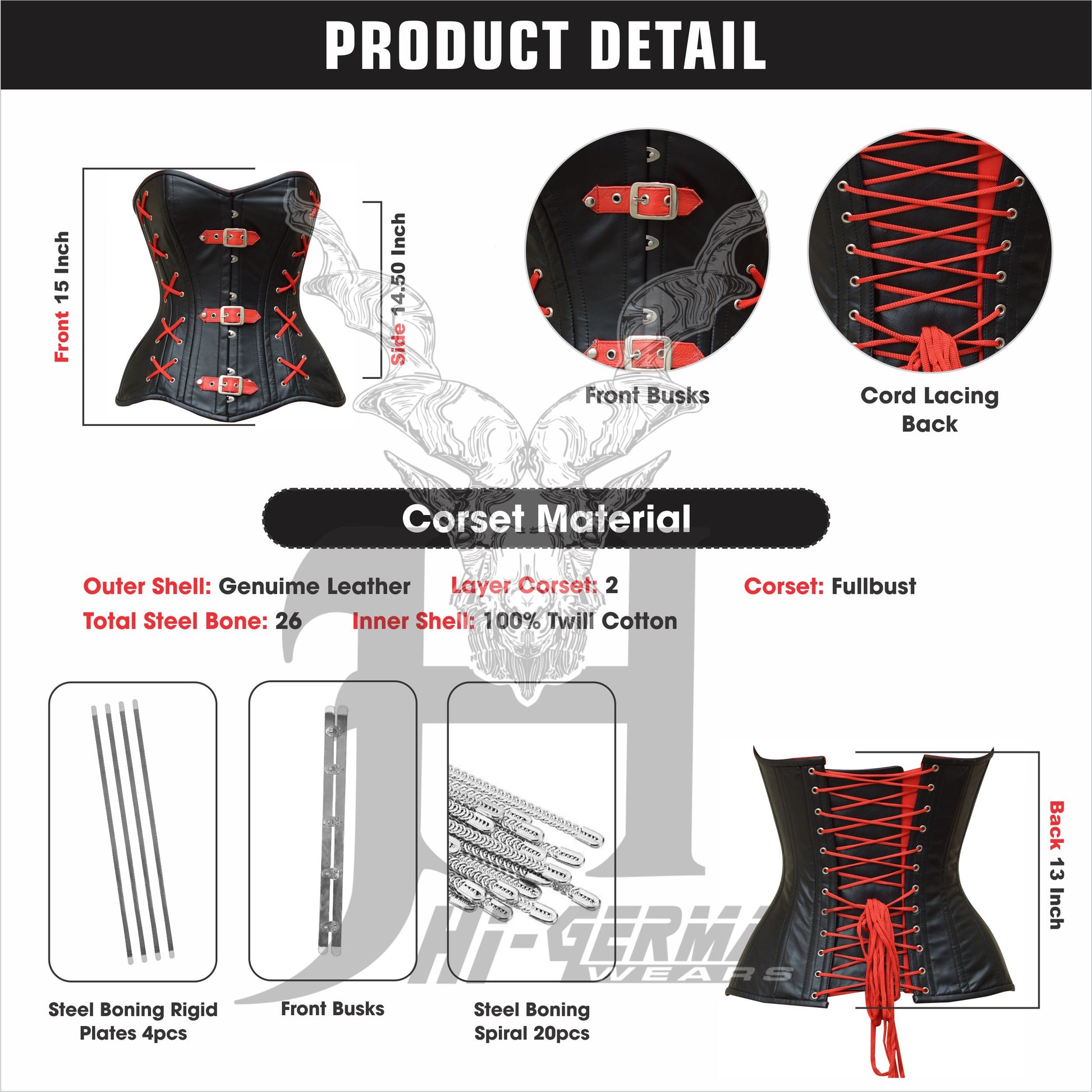 Women's Vollbrust Corsage Schwarz Leder Korsett Gothic Overbust Black Leather Corsets