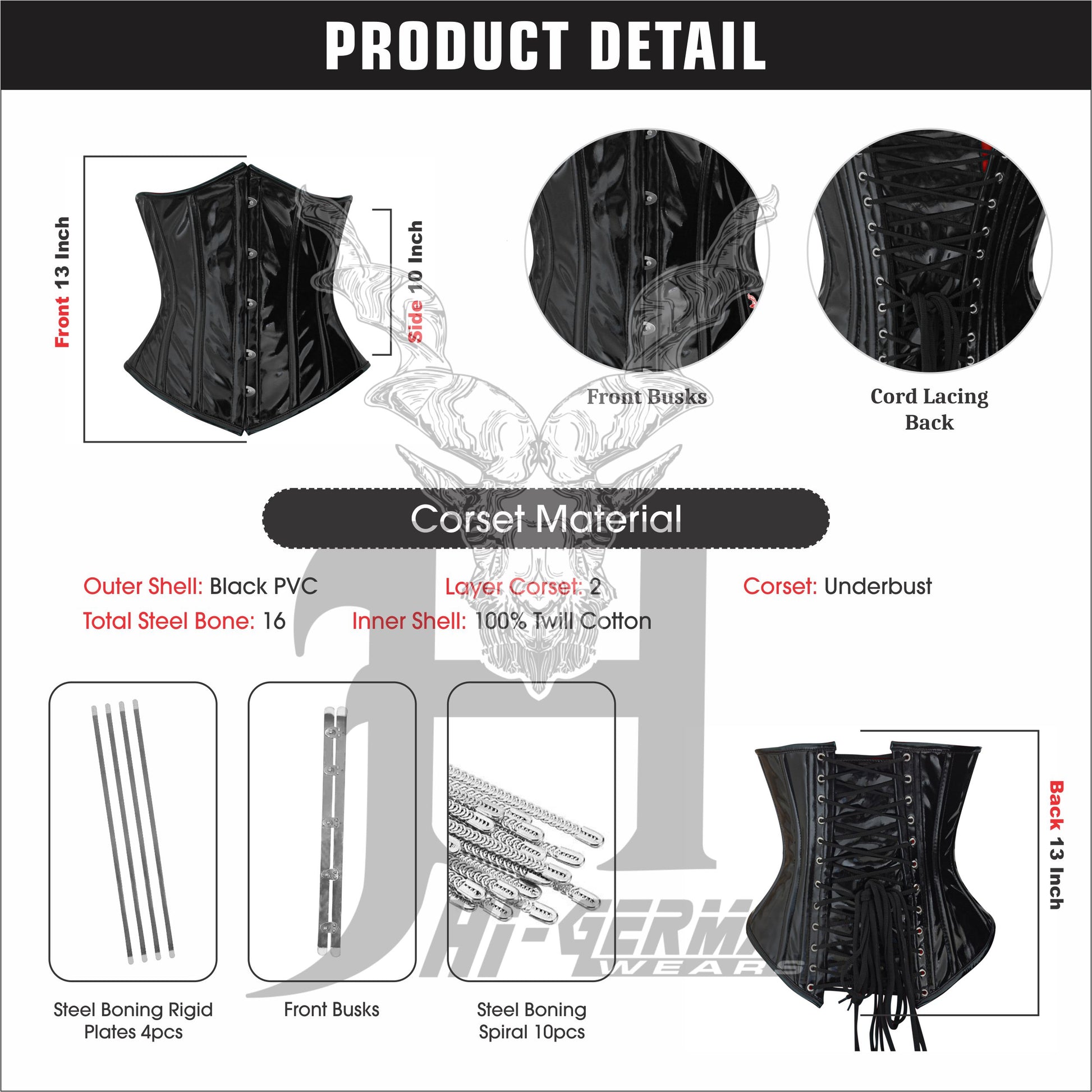 Women’s Underbust Black PVC Corset with Steel Boning by HI-GERMANWEARS