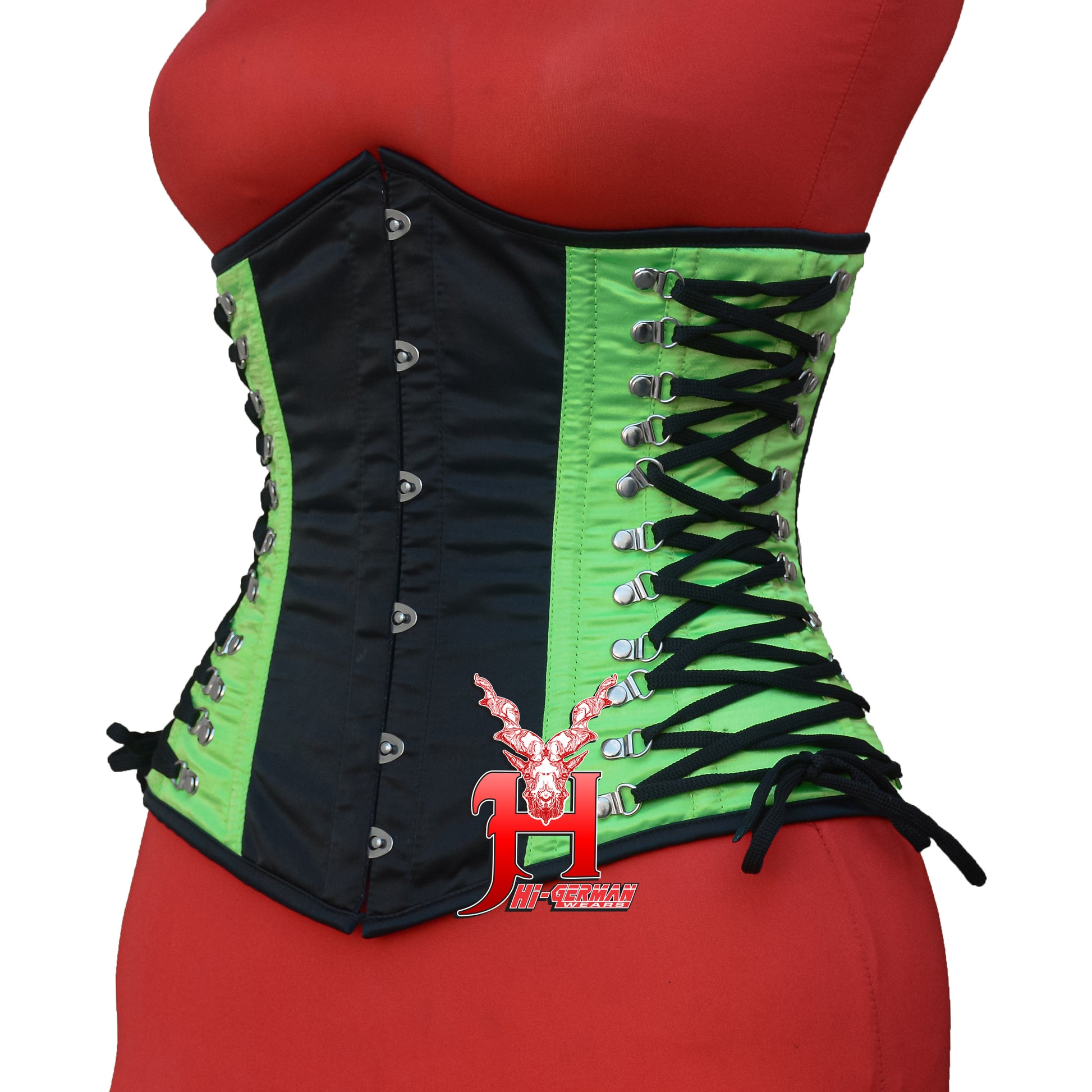 Made from premium black and green satin with reinforced steel boning and adjustable side laces, this underbust corset ensures comfort, durability, and a beautifully contoured hourglass silhouette. Perfect for waist training, body shaping, cosplay, clubwear, or fetish-inspired outfits.